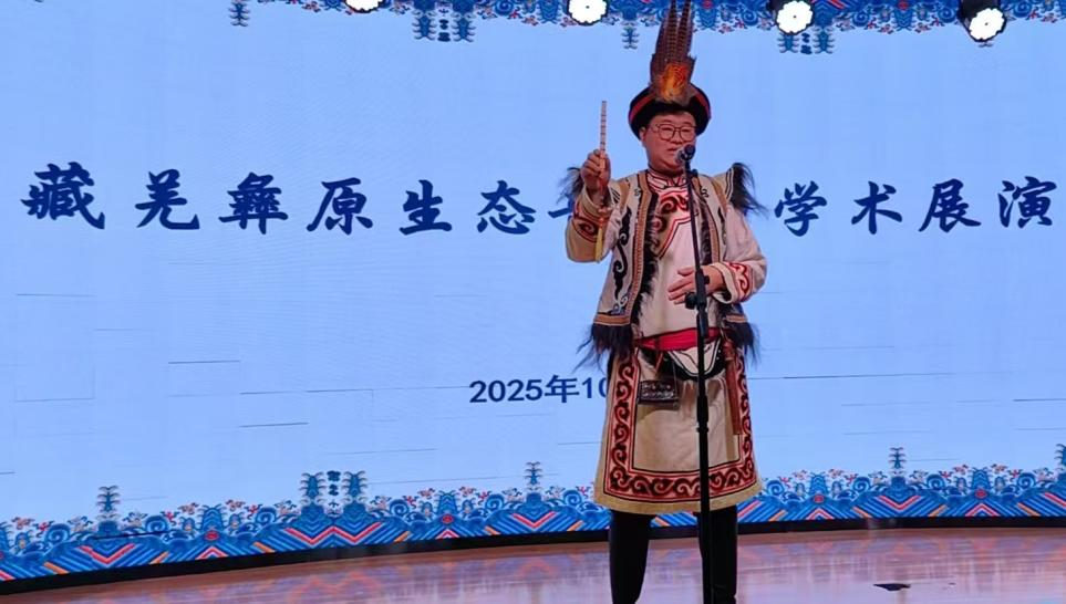 非遗传人周万航(尔玛鼎)现场表演了羌笛独奏《羌山情》。国家级非遗项目“羌笛技艺”新生代传承人周万航(尔玛鼎)师从陈海元,多次在央视及重要展演中获奖并登台表演,兼具演奏与制作技艺,为羌笛艺术的现代传播注入新活力。